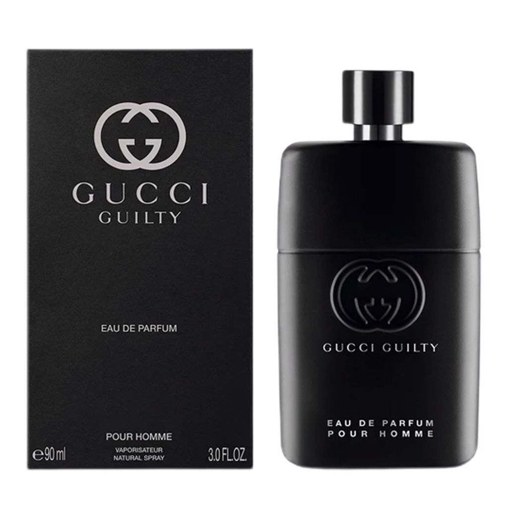 Phiên bản Guilty Pour Homme 3.0 oz EDP (Eau de Parfum) là một loại nước hoa có độ lưu hương và thời gian giữ mùi lâu hơn so với phiên bản EDT (Eau de Toilette). Nó được đóng trong một chai màu đen sang trọng và đầy nam tính với chữ Gucci Guilty được in chìm mạ vàng ở giữa chai.